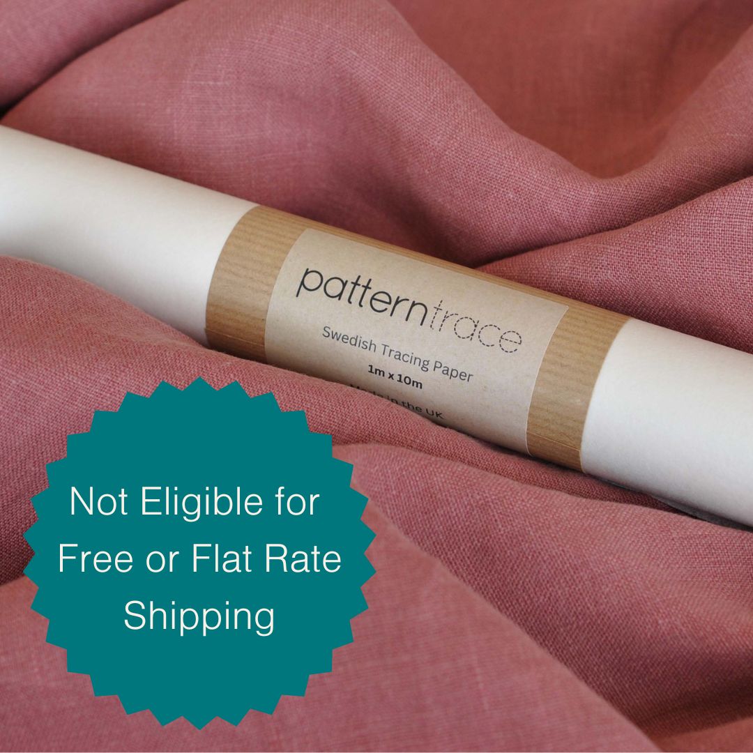 This item is not eligible for free or flat rate shipping. We will calculate actual shipping costs and get back to you to give you the option of proceeding with the order or not. Shipping averages approximately $45.00. This item is a long, narrow tube and ships in a long, narrow box. If you plan to have this item shipped, we suggest that you purchase one 50M roll as it will fit in the same size box as up to four 10M rolls.