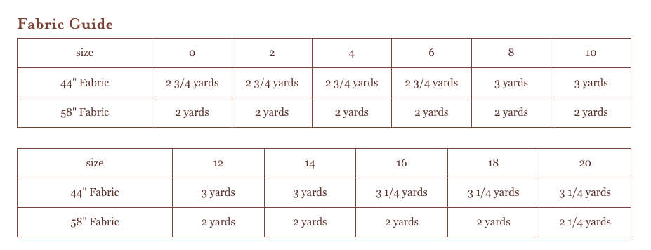Notions: Coordinating thread, medium- to heavyweight interfacing (fusible or sew-in), approximately 15 yards of bias binding or seam binding to finish the seam allowances (optional), 1–1 1/2 yards of 1/4" chain to weight the hem (optional).